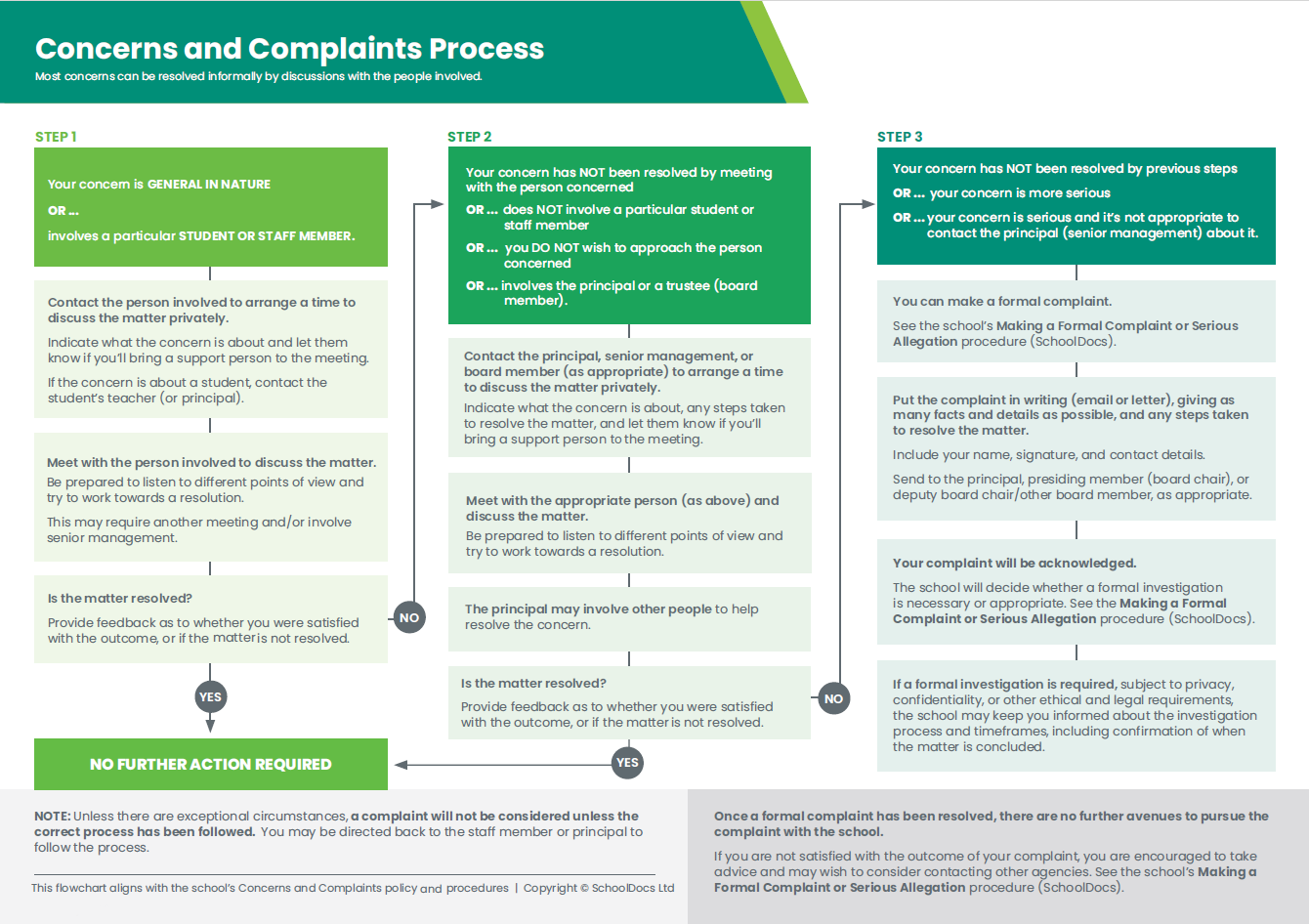 Check our School Policies and Procedures or follow the process shown in the chart provided below.